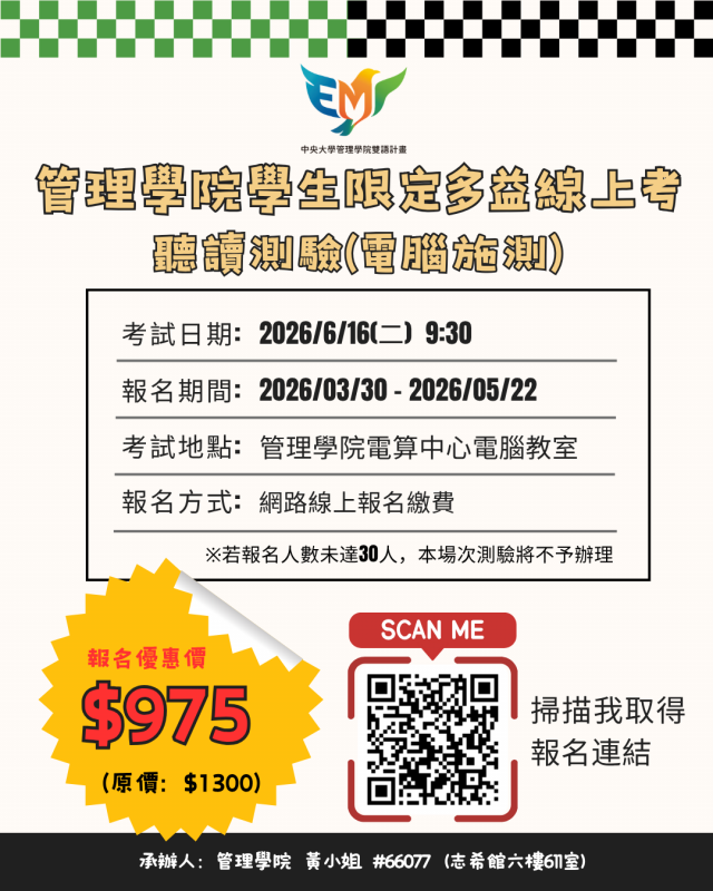 ✨ 管理學院 TOEIC 校園測驗報名開跑
